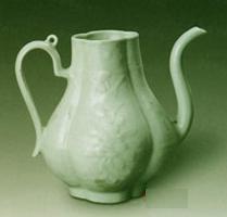 明から清の早期の龍泉窯の青磁釉は新しい特徴は現しました。緑よりも翠色で、透明感のあるガラス質の釉層になります。その原因は地理的に近い景徳鎮窯からの影響だと考えられます。![]() 清の時代に入るとほとんどの龍泉窯の職人は景徳鎮に移り、”龍泉窯”風格の作品は景徳鎮窯で作られていますが、黄色帯の鈍い色合いの青磁色になり、青磁技能的には衰退した。同時期、染付器と色絵器の上達により青磁の人気はも後退したと見られます。 ![]() |
