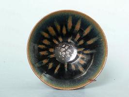 鉄釉窯変の一種です。唐の時代にの窯変で出来た高温結晶釉です。 唐~元、中国北方窯の釉薬に希金属が多く含まれるため、高温黒釉の表面に緑色~黄色の結晶状物ができます。できた釉面には緑と黄色混ぜるお茶葉末の感じが取れるから呼び名を得た。唐~元の茶葉末釉と呼ばれるものは自然窯変は基本ですから、色調多様で、発色部分もばらばらです。 右は元の時代磁州窯の鉄釉の窯変だと思います。 ![]() 明成化年景徳鎮官窯は初めて、意識的に茶葉末釉を作りだしました。色調子は艶のよい温かみのある黄色で、荒い黒い結晶が混ざっていますから、”鱚魚黄”と呼ばれます。ほとんど鑑賞用の高級品で遺品は極めて少ない。 清の早期から中期に掛けて多く作られています。 |